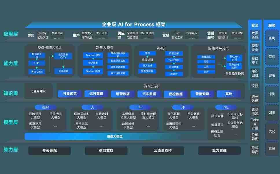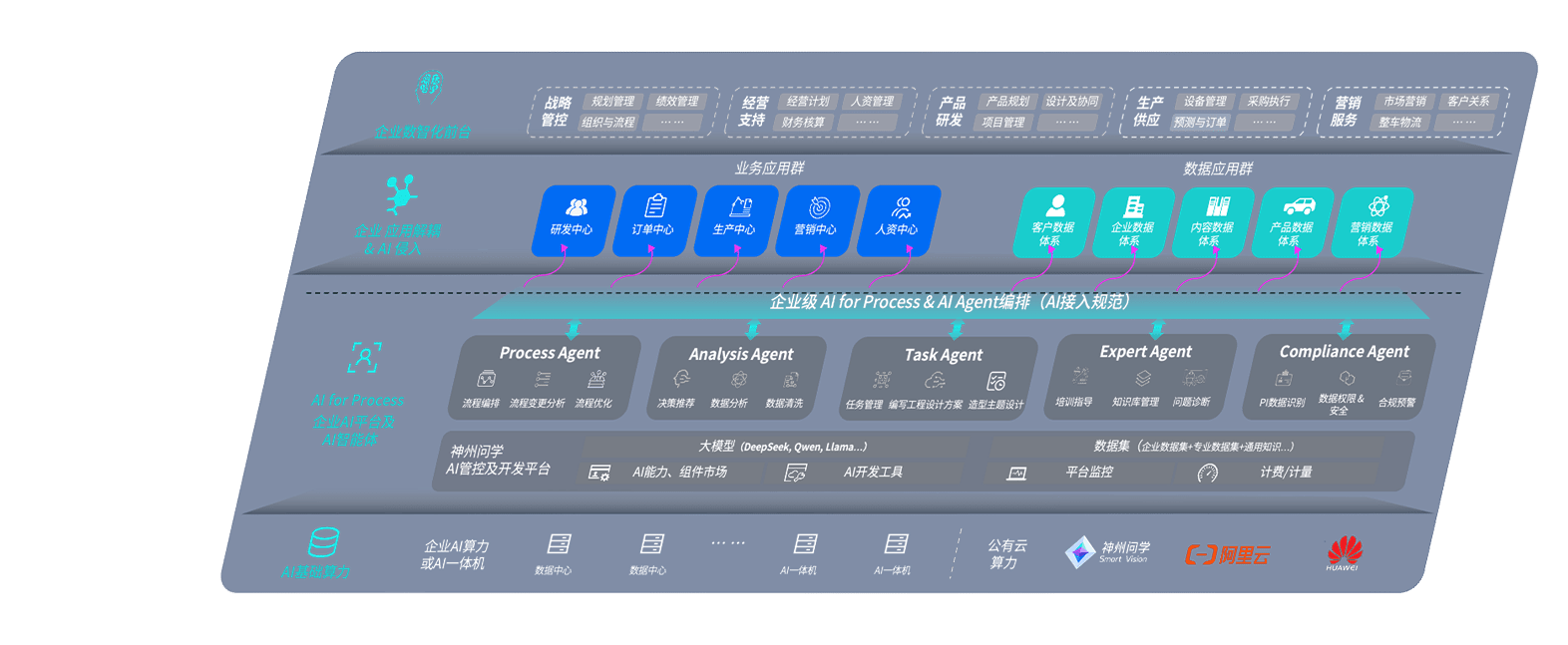 端到端的一站式AI工作空间深度融合了从企业战略规划到日常经营的全流程业务板块,,,定向解决车企内部领域多、、部门多、、、、链条长、、、、场景碎片化等难题,,支持车企快速构建以AI为核心的生产力写作体系,,实现任务执行与AI能力的无缝集成与交互
